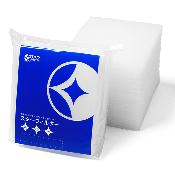 レンジフード用のフィルター(換気扇フィルター)です。 不燃性のガラス繊維を使用した高除去・高性能フィルターです。