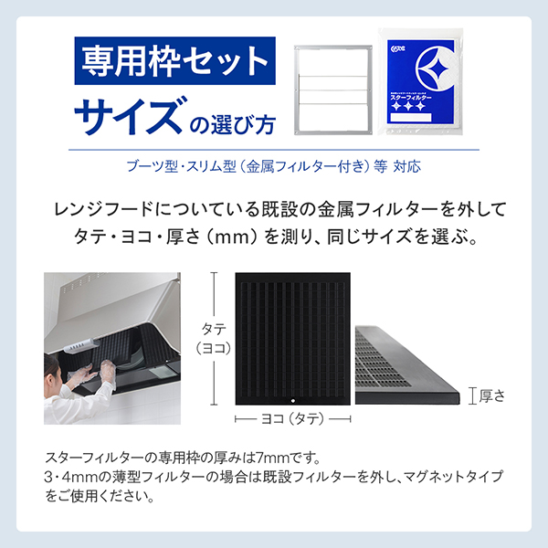 ●専用枠は、ご自宅のレンジフードに設置されている金属フィルターと同じ枚数をご選択ください。