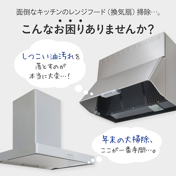 | ご使用上の注意 | ●一般家庭用レンジフードフィルター以外での使用はしないでください。 ●レンジフードフィルターは不燃性ガラス繊維を使用していますが、キャッチした油や埃に引火することがあります。長期間の使用による油分の堆積は危険ですのでご注意ください。 ●レンジフードフィルターの設置に際しては、各自治体が定めた火災予防条例における火源との距離を保持してください。 ●レンジフードフィルターは使い捨て商品です。洗浄して繰り返し使用するのは、ガラス繊維が飛び散る原因となりますのでご注意ください。 ●むやみに折ったり切ったりはしないでください。また、強い衝撃を与えないでください。 ●ガラス繊維が刺さった場合は、石けんとぬるま湯でもみ洗いしてください。それでも異常が残る場合は、医師に相談してください。 ●交換フィルターは直射日光や湿気の多い場所を避け、小児の手の届かない所に保管してください。 ●取り付けが不完全な場合は専用枠ごと落下する恐れがありますので、確実に取り付けられたか必ず確認してください。 |
